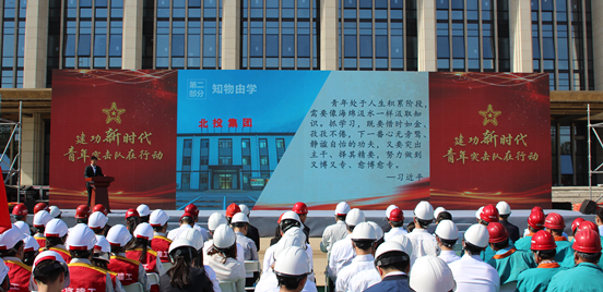 2018年5月3日下午,“建功新時代,青年突擊隊在行動”黨的十九大精神主題宣講活動在北京城市副中心行政辦公區工程項目工地現場舉行。活動由共青團北京市委員會與北京城市副中心行政辦公區工程建設辦公室聯合主辦,北投集團團委獨家承辦,北京城建集團、北京建工集團、北京住總集團、北京市政路橋集團、中建一局、中建八局、中鐵建十六局等13家企業團委協辦。