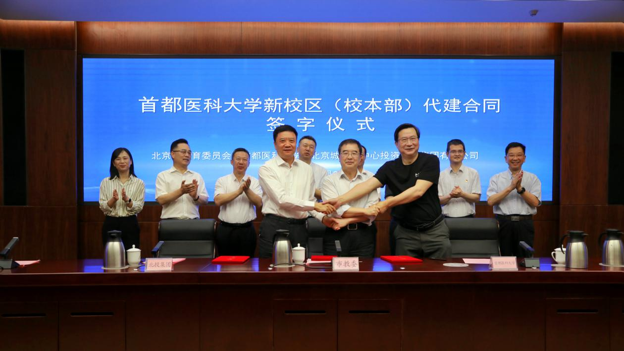 5月24日,市教委、首都醫(yī)科大學、北投集團簽訂首醫(yī)大新校區(qū)(校本部)代建合同。市委教育工委副書記、市教委主任李奕,北京教育學院院長張永凱,首都醫(yī)科大學黨委書記呼文亮,校長饒毅,黨委副書記孫力光,黨委常委、副校長徐良,北投集團黨委書記、董事長李長利,黨委委員、副總經(jīng)理高小強等參加活動。